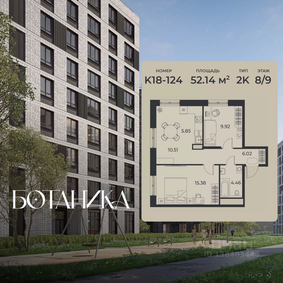 52 м² · Этаж 8 из 9