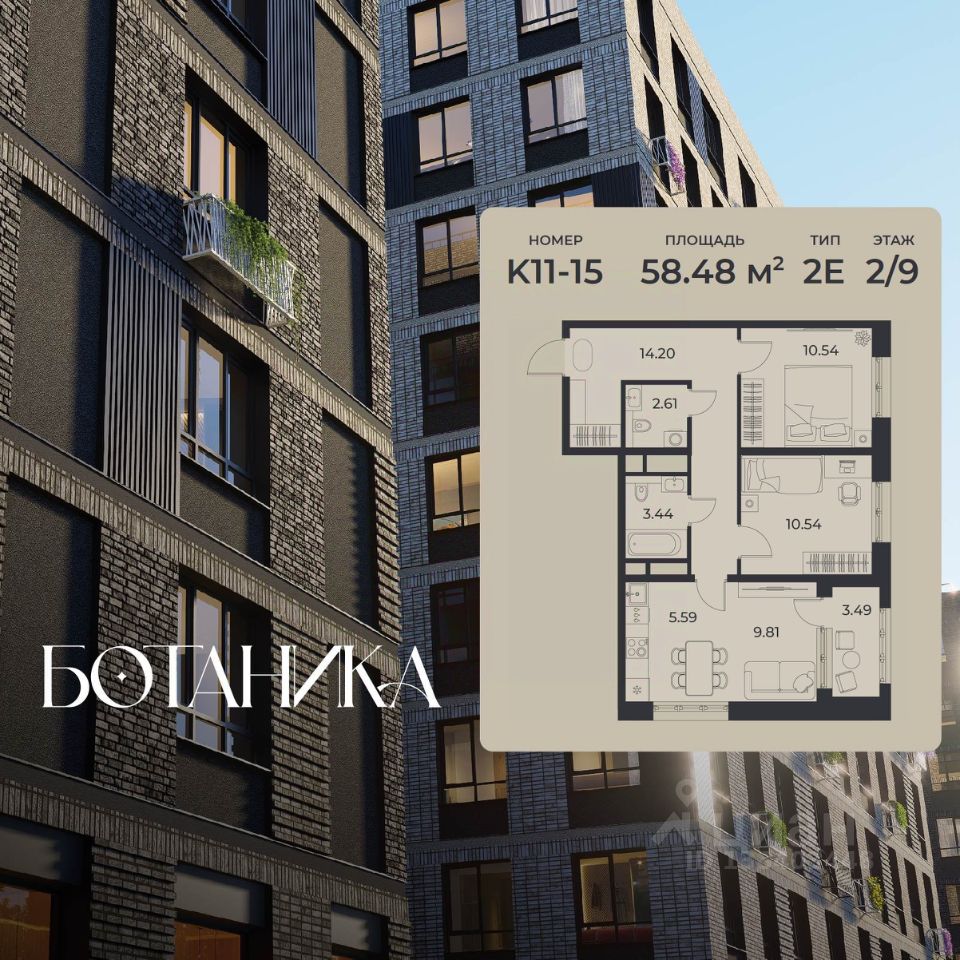 58 м² · Этаж 2 из 9