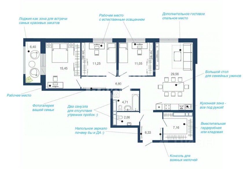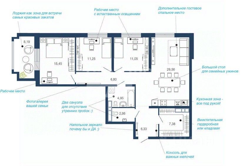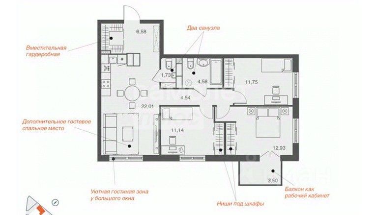 55 м² · Этаж 11 из 24