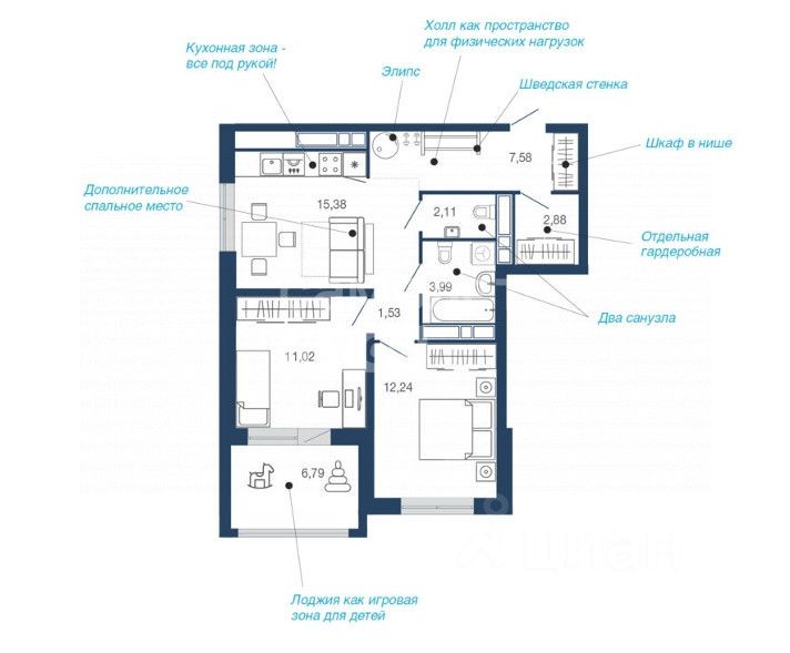 Арт. 103706429 Продаётся уютная Двухкомнатная квартира в ЖК ''Поколение'' современный комфорт в сердце Липецка! О квартире: Общая площадь: 73,9 м² (жилая 34,5 м², кухня-гостиная 17,0 м²) Планировка: изолированные комнаты (15.3 + 19,2 м²), просторная прихожая (13,1 м²) Этаж: 7 из 17 отличный вид и тишина Высота потолков: 2,8 м ощущение простора 2 Лоджия: 4.3 и 3.6 м² место для утреннего кофе или вечернего отдыха Отделка: черновая возможность создать интерьер по своему вкусу Преимущества ЖК ''Поколение'': Безопасность и комфорт: закрытая охраняемая территория, двор без машин, многоуровневый паркинг Современные технологии: монолитно-кирпичное строительство, качественное остекление, бесшумные лифты Продуманная инфраструктура: дизайнерские детские площадки, воркаут-зоны, пешеходная аллея Удобное расположение: рядом парк ''Быханов сад'', школы, сады, ТЦ ''Континент'', кафе, поликлиники Отличная транспортная доступность: 13 маршрутов от остановки ''Быханов сад'' (5 мин пешком) Дополнительные выгоды: Ипотека от 6% выгодные условия! Бесплатное сопровождение сделки поможем на каждом этапе. Звоните прямо сейчас! Ваша идеальная квартира ждёт вас! ЖК ''Поколение'' это не просто жильё, это новый уровень жизни!