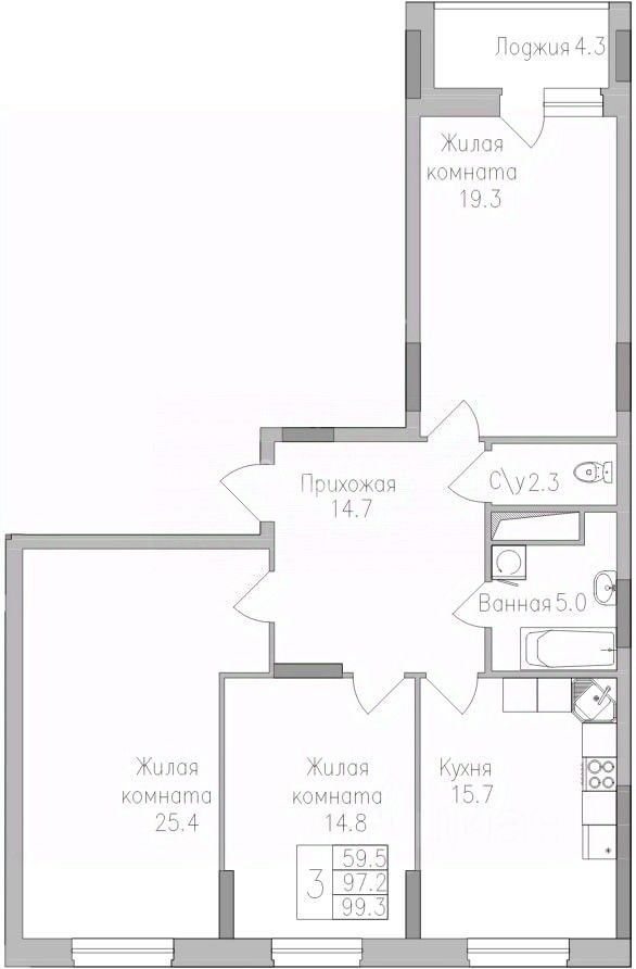 71 м² · Этаж 15 из 15