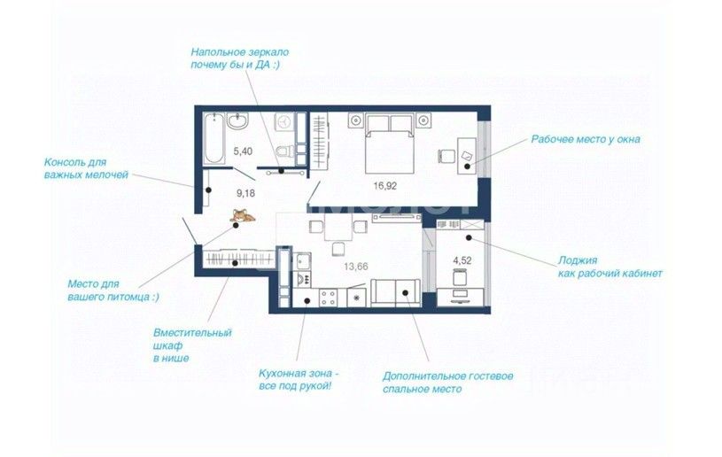 45 м² · Этаж 9 из 17