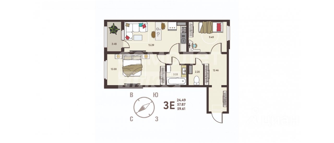 59 м² · Этаж 13 из 17