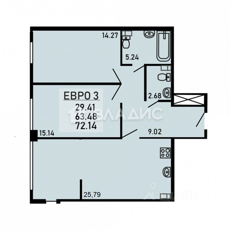 72 м² · Этаж 9 из 25
