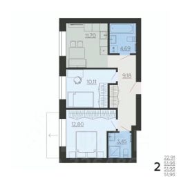 Двухкомнатная квартира 51.93 кв.м. от застройщика Ремстройсервис, расположена по адресу: ул. Школьная, С1 . На 3 этаже, 6 этажного здания. Просторная кухня 11.7 кв.м..