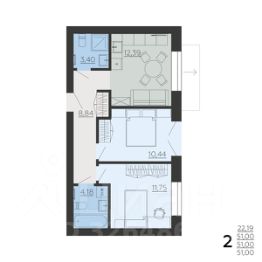 Двухкомнатная квартира 51 кв.м. от застройщика Ремстройсервис, расположена по адресу: ул. Школьная, С1 . На 2 этаже, 6 этажного здания. Просторная кухня 12.39 кв.м..