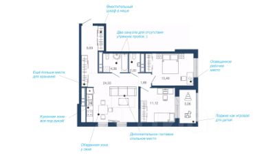 Трехкомнатная квартира 87.69 кв.м. от застройщика ООО СЗ ''АИСТТАУЭР'', расположена по адресу: ул. Нестерова, д. 9 . На 4 этаже, 24 этажного здания. Просторная кухня 17.56 кв.м..