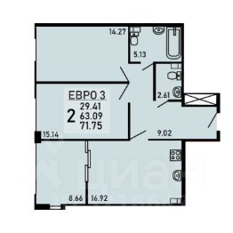 Двухкомнатная квартира 66.92 кв.м. от застройщика ООО СЗ ''АИСТТАУЭР'', расположена по адресу: ул. Нестерова, д. 9 . На 2 этаже, 24 этажного здания. Просторная кухня 17.14 кв.м..