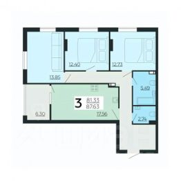 Трехкомнатная квартира 87.63 кв.м. от застройщика ООО СЗ ''АИСТТАУЭР'', расположена по адресу: ул. Нестерова, д. 9 . На 3 этаже, 24 этажного здания. Просторная кухня 17.56 кв.м..