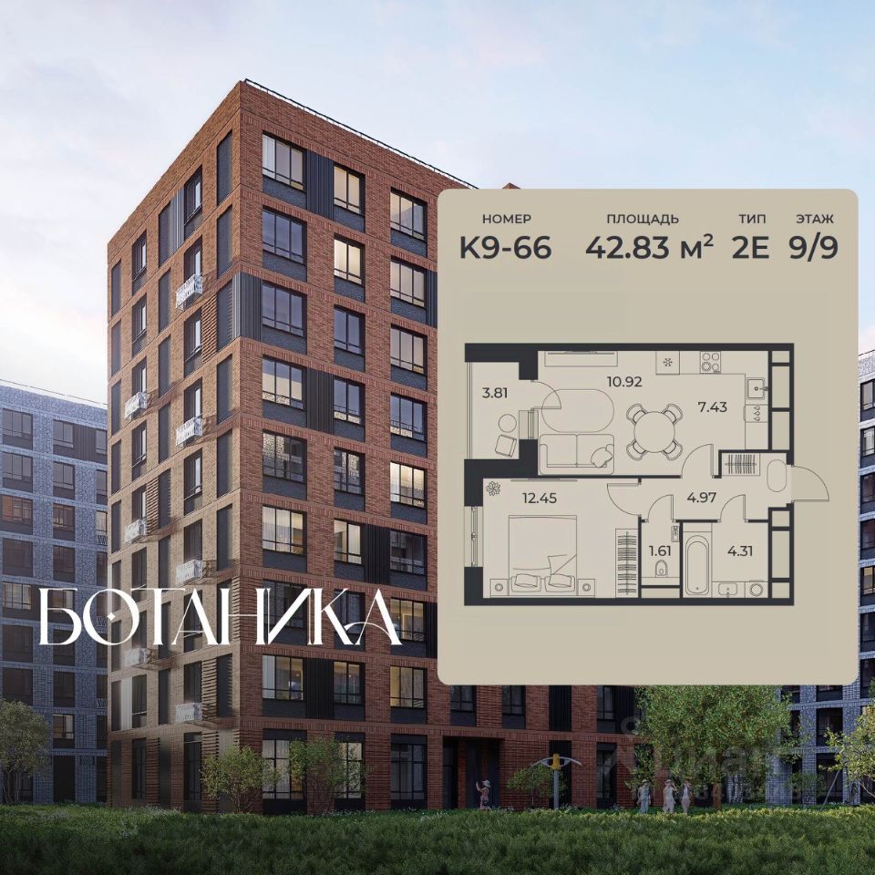 42 м² · Этаж 9 из 9