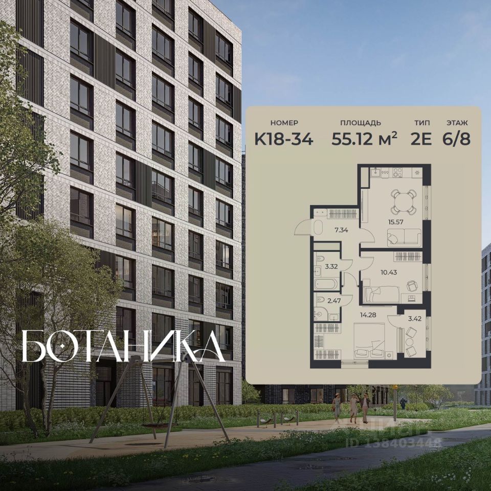55 м² · Этаж 6 из 9