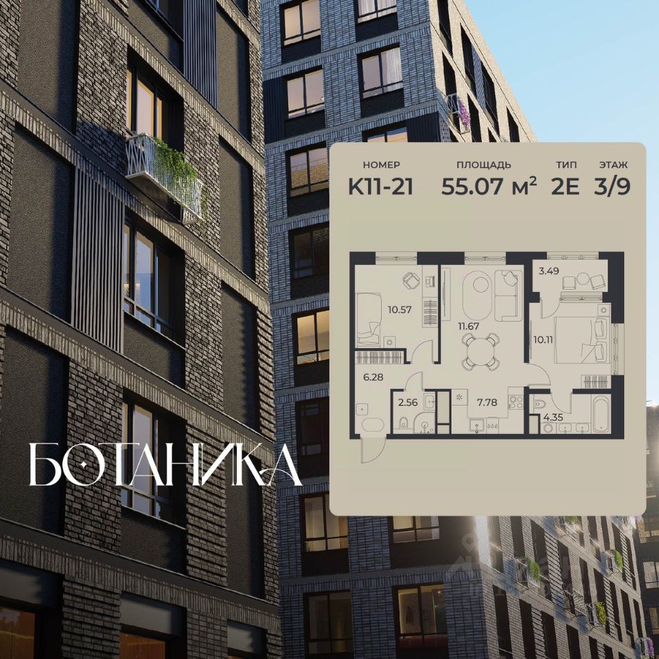 55 м² · Этаж 7 из 9