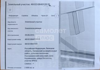 ПРОДАЮ земельный участок под ижс Кадастровая площадь объекта 48:16:0540203:19 составляет 1200 кв.м.имеются документы на участок и дом 19,9м.кв ( который был снесен)Кадастровый номер: 48:16:0540203:49Наименование: индивидуальный жилой домимеется точка электричества со счетчиком- офорормлено, вода(центральная) проходит рядомгазопровод проходит рядомРЯДОМ НАХОДЯТСЯ ВСЕ НЕОБХОДИМЫЕ ОБЪЕКТЫ ИНФРАСТРУКТУРЫ.ВСЕ ДОКУМЕНТЫ В ПОРЯДКЕ, МЕЖЕВАНИЕ ПРОВЕДЕНО. ОБРЕМЕНЕНИЙ НЕТ,ЧИСТАЯ ПРОДАЖАУЧАСТОК РОВНЫЙ, ПО ПЕРИМЕТРУ ИМЕЮТСЯ ДУБОВЫЕ СТОЛБЫ ПОД ЗАБОР.
