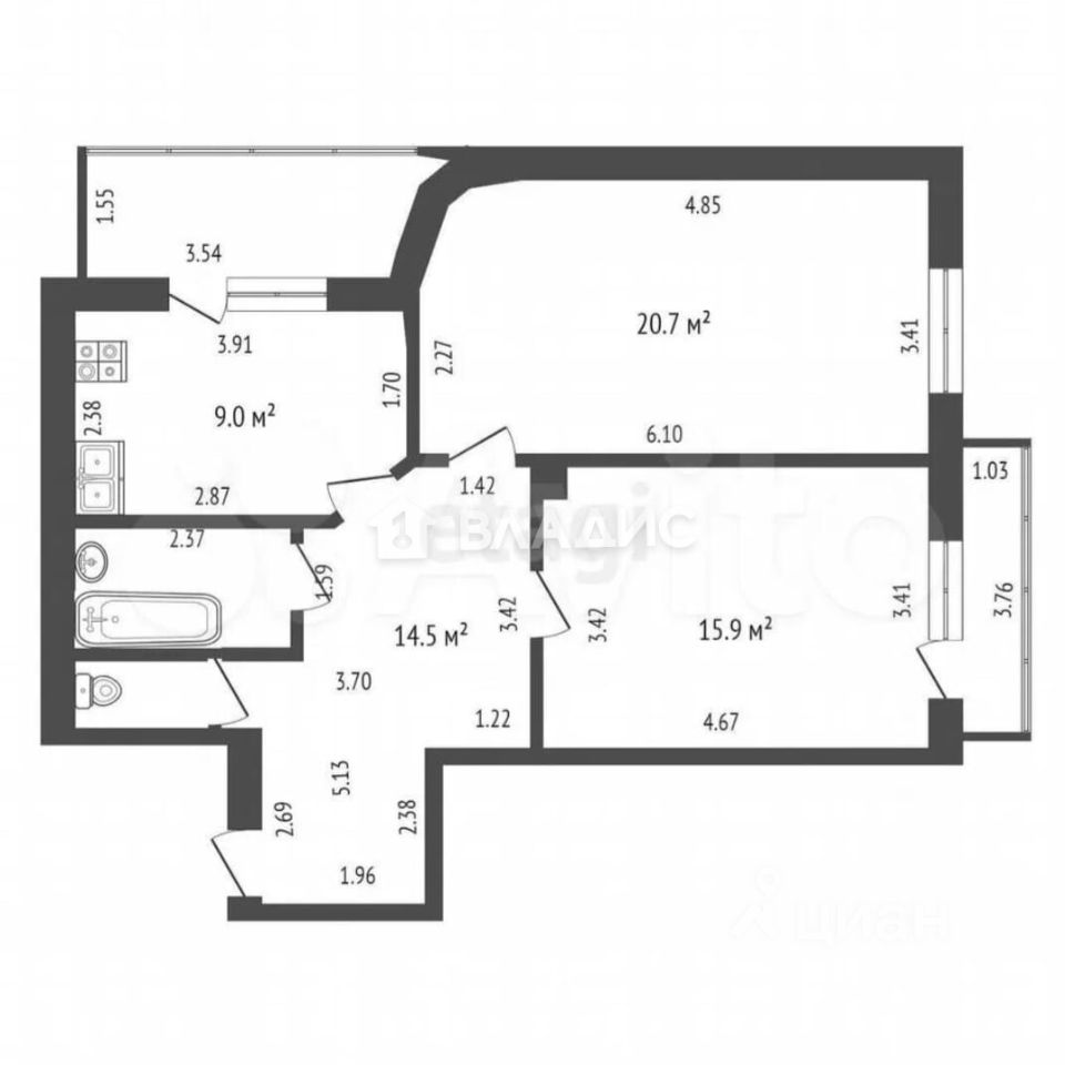 Квартира расположена на третьем этаже 17-этажного кирпично-монолитного дома, построенного в 2015 году. Общая площадь составляет 68 кв. м, из которых 36,6 кв. м — жилая площадь. Две изолированные комнаты (15,9 кв. м и 20,7 кв. м) обеспечивают комфортное размещение для всей семьи. Высота потолков 2,7 м создаёт ощущение простора и свободы.