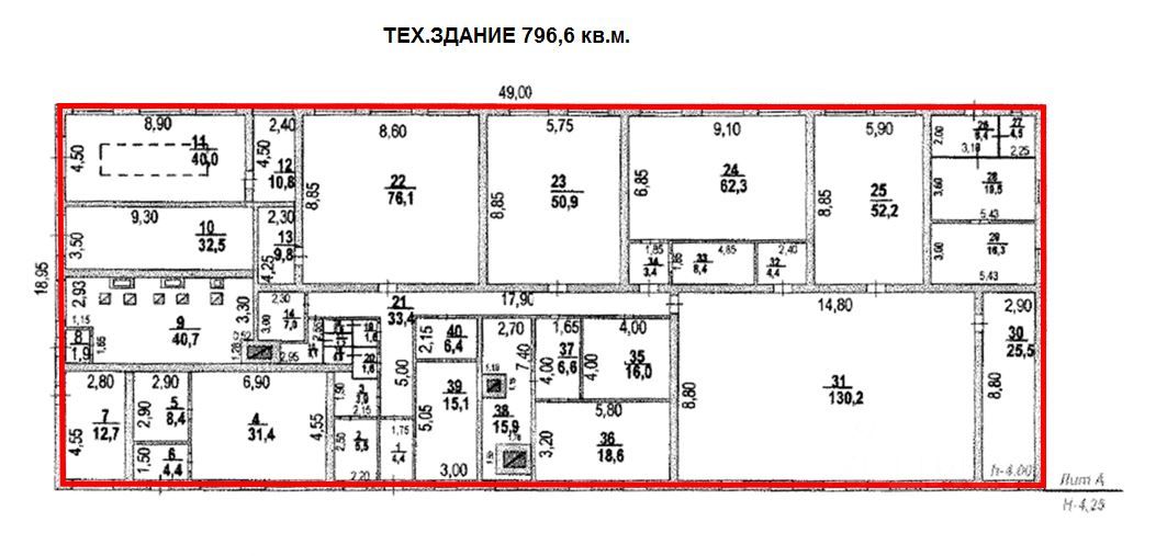 1. Техническое здание площадью 796,6 кв.м., нежилое одноэтажное. Год постройки: 1964. Планировка помещений: преимущественно зальная. Высота потолков: 2,8 м. Разрешенная мощность: 10 кВт.