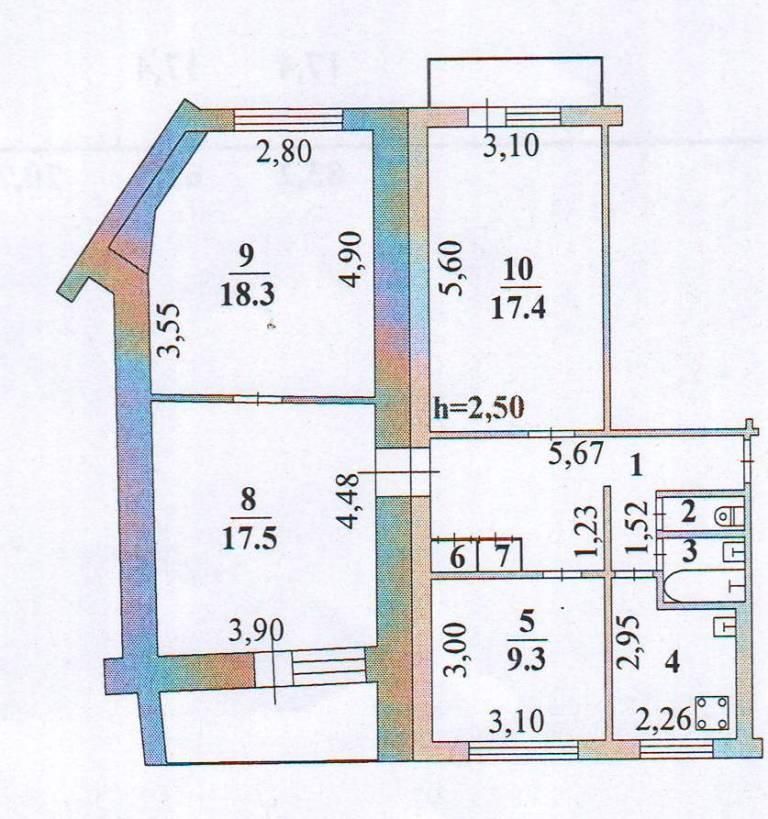 - комнаты изолированные: 18,3, 17,4, 17,5 и 9,3 кв.м.