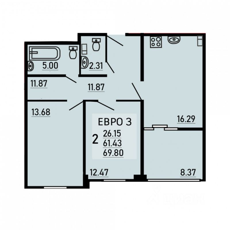 Двухкомнатная квартира 69.8 кв.м. от застройщика Ремстройсервис, расположена по адресу: ул. Студеновская, 23б . На 15 этаже, 25 этажного здания. Просторная кухня 16.29 кв.м..