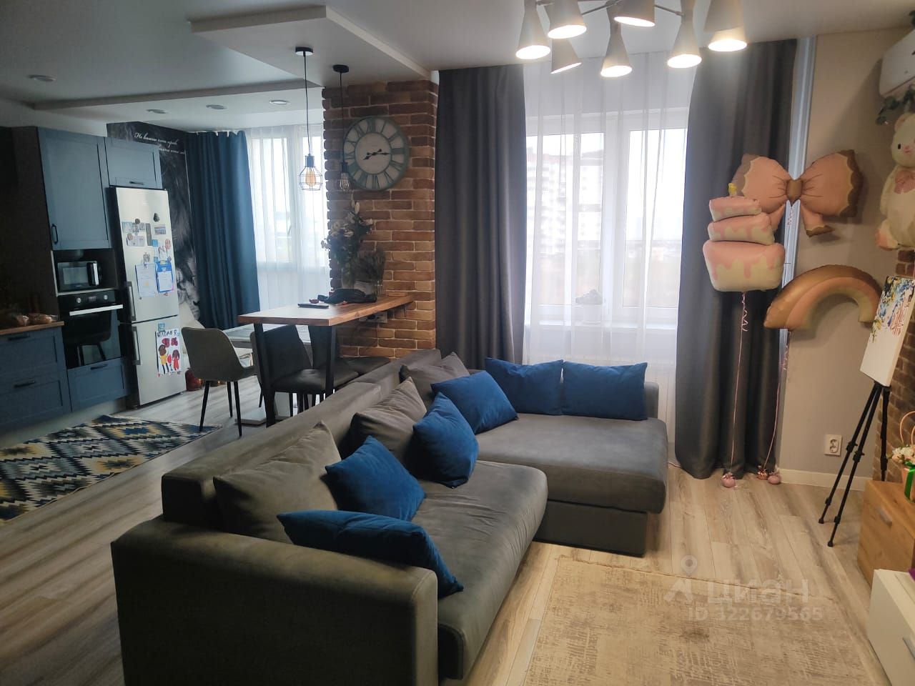 Планировка: Коридор, совмещенный санузел, Кухня-гостинная с панорамными окнами, комната, кладовка.