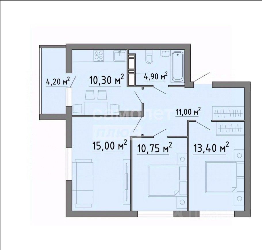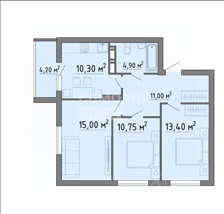 Общая площадь69,55 м2
