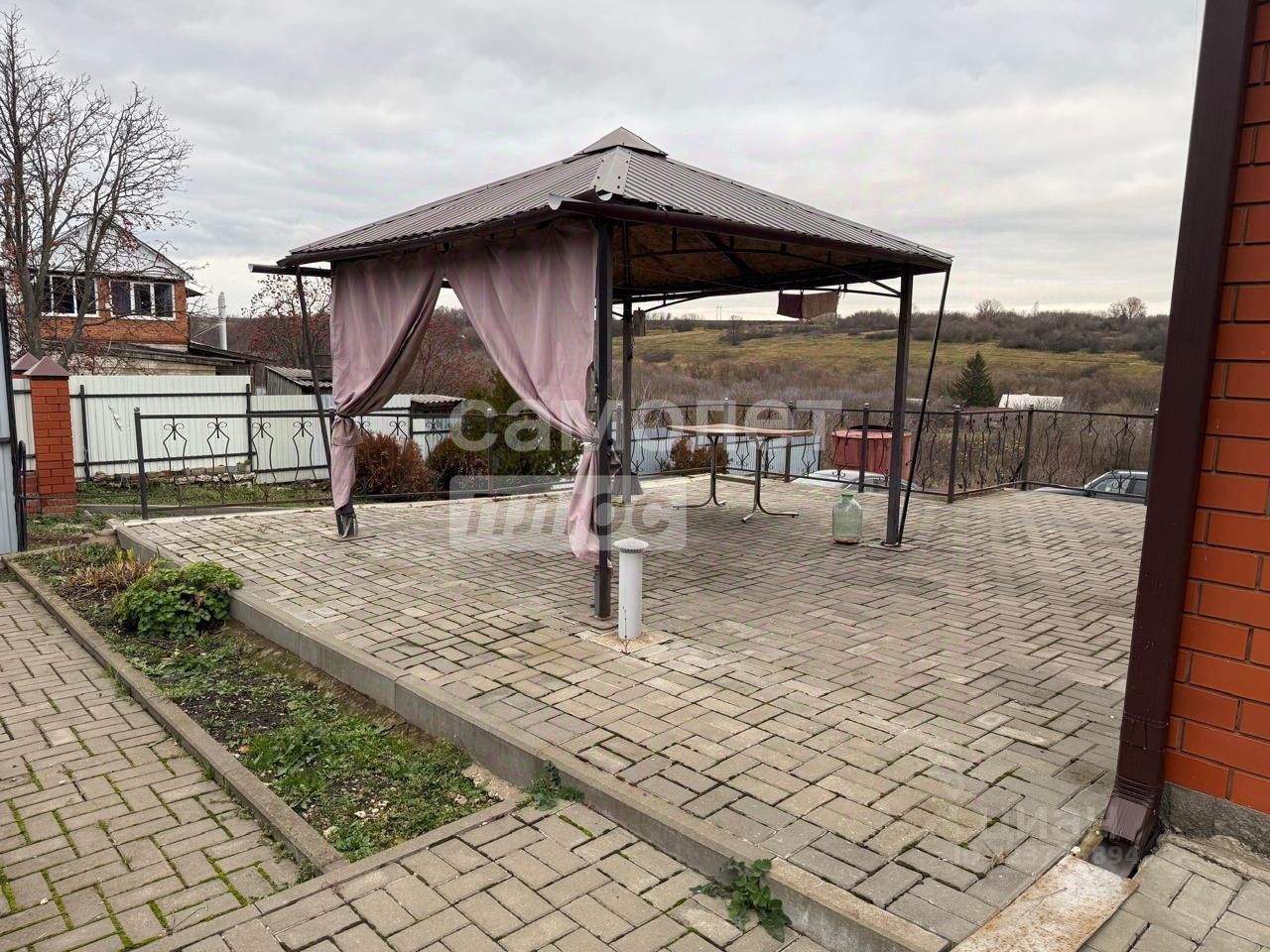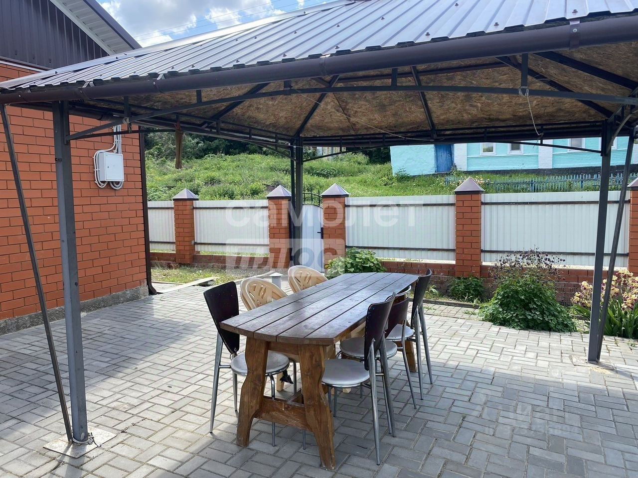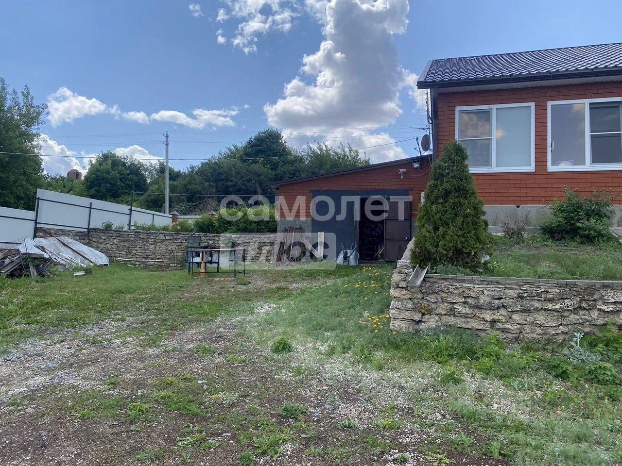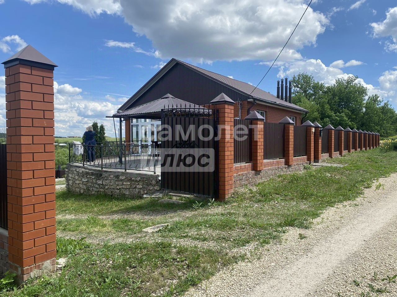 Дом полностью оборудован — есть все удобства, дровяной камин. Во дворе расположены хозяйственные постройки, два гаража и две беседки.