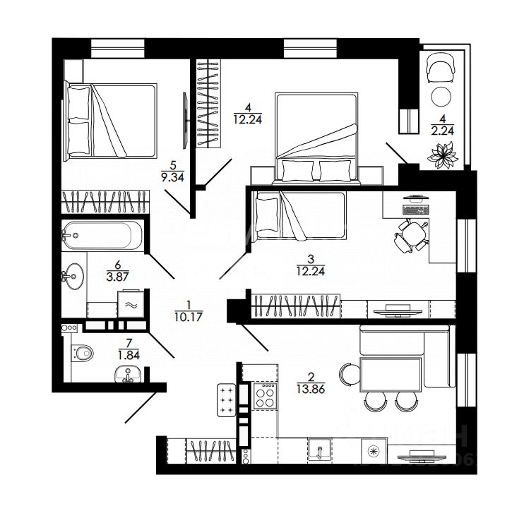 Арт. 126138290 Продаётся 3-х комнатная ВИДОВАЯ квартира на 19 этаже из 25 с кухней 13 квадратов!