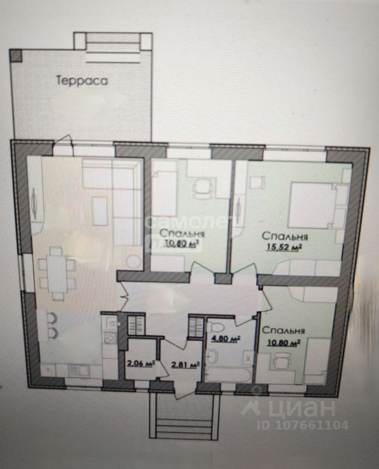Общая площадь53,5 м2