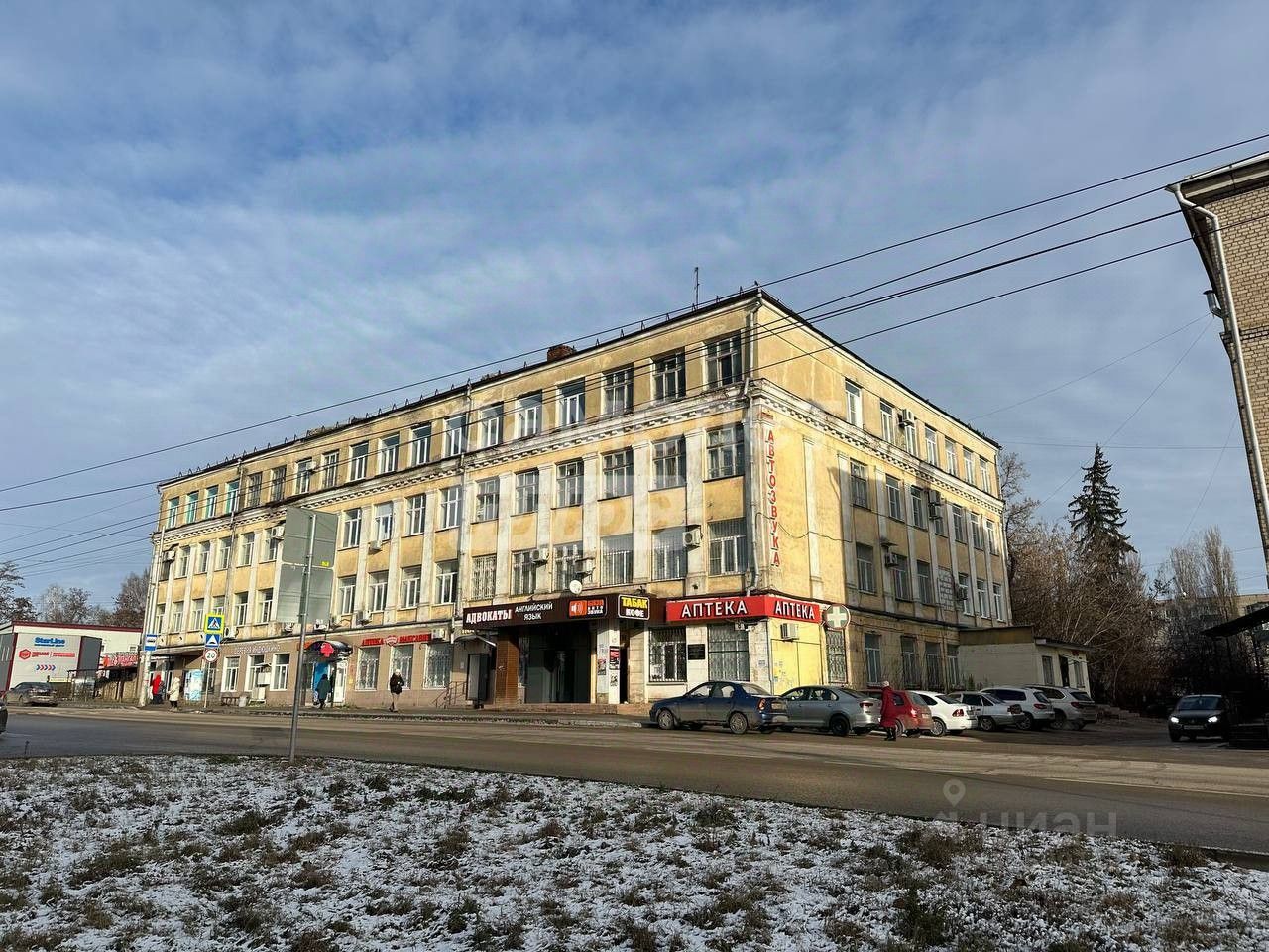 Высокий пешеходный трафик. Остановка общественного транспорта у здания.