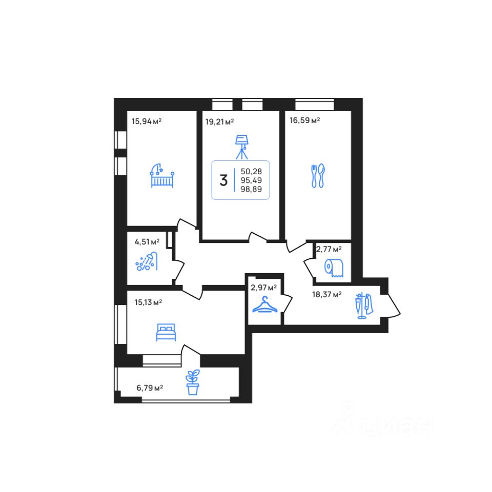 Общая площадь98,89 м2