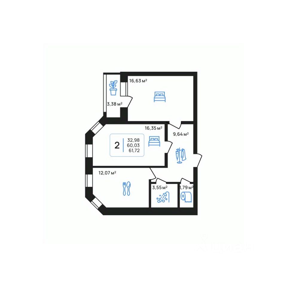 Общая площадь61,75 м2