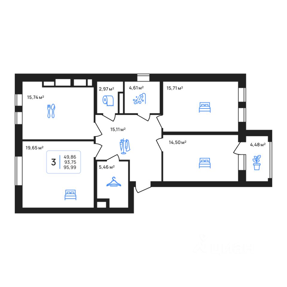 Общая площадь95,98 м2