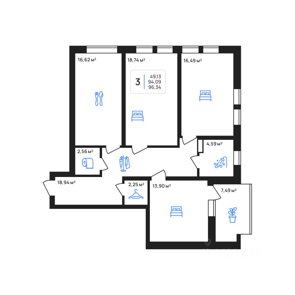 Общая площадь96,34 м2