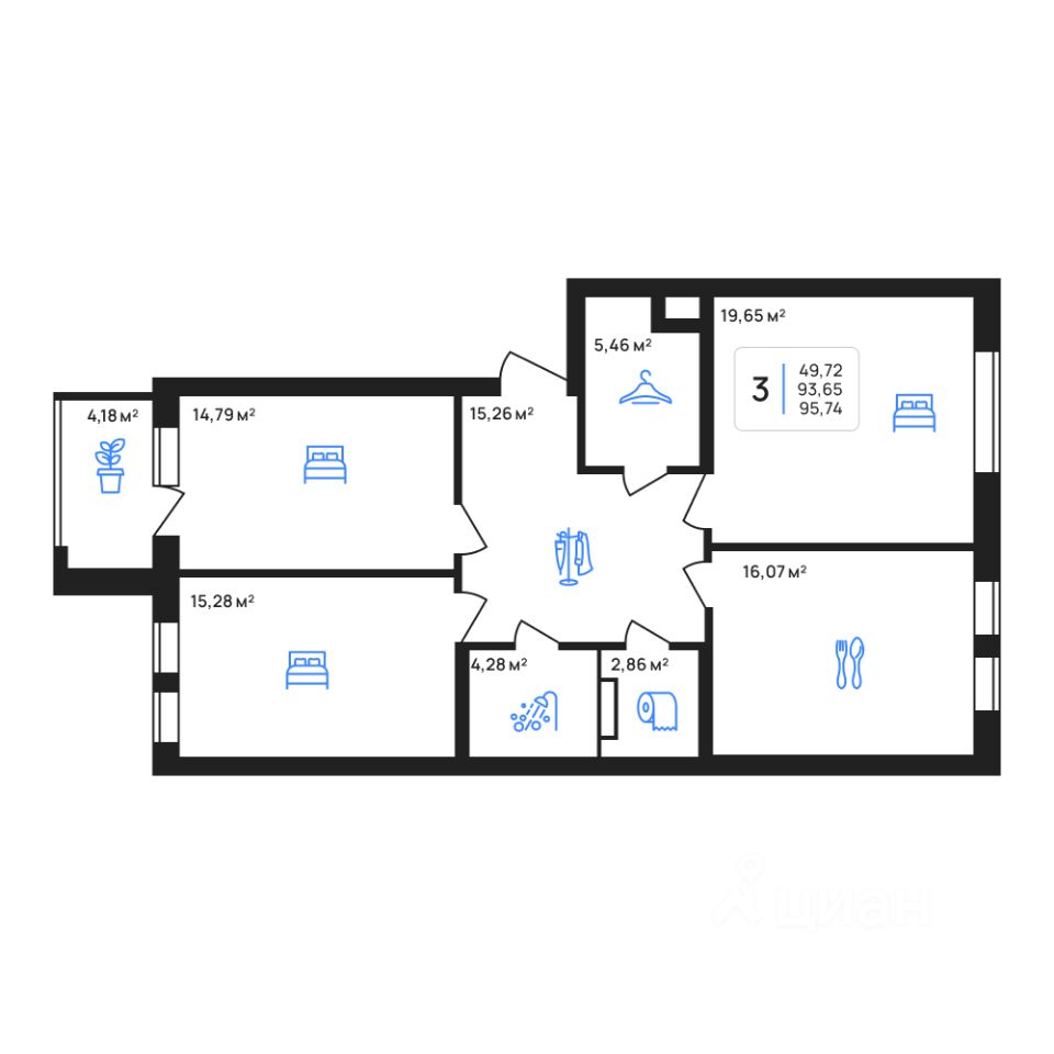 Общая площадь95,74 м2