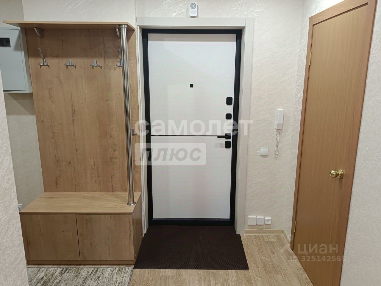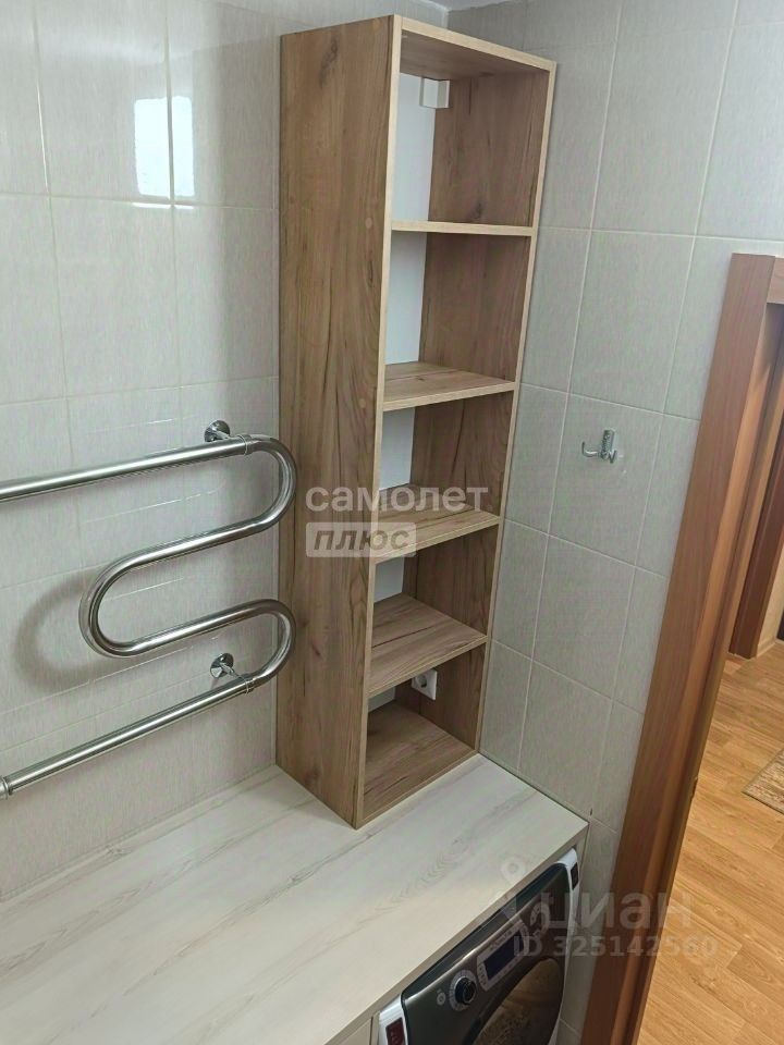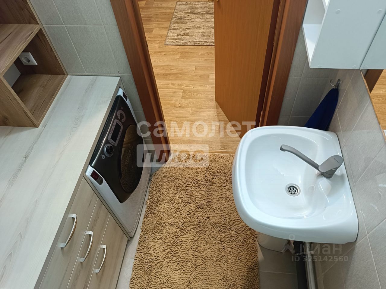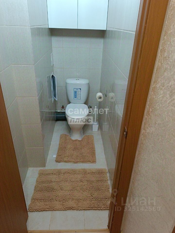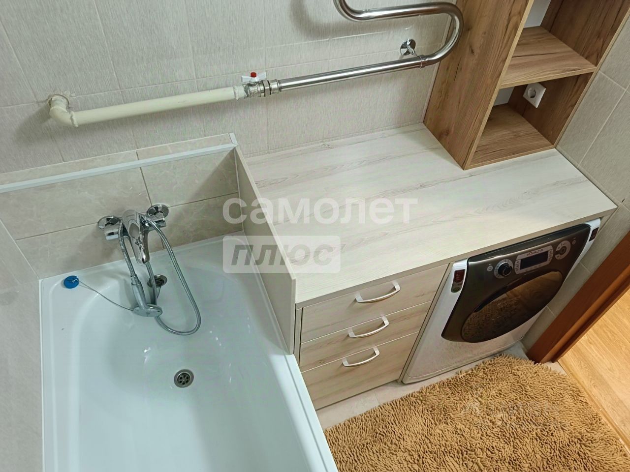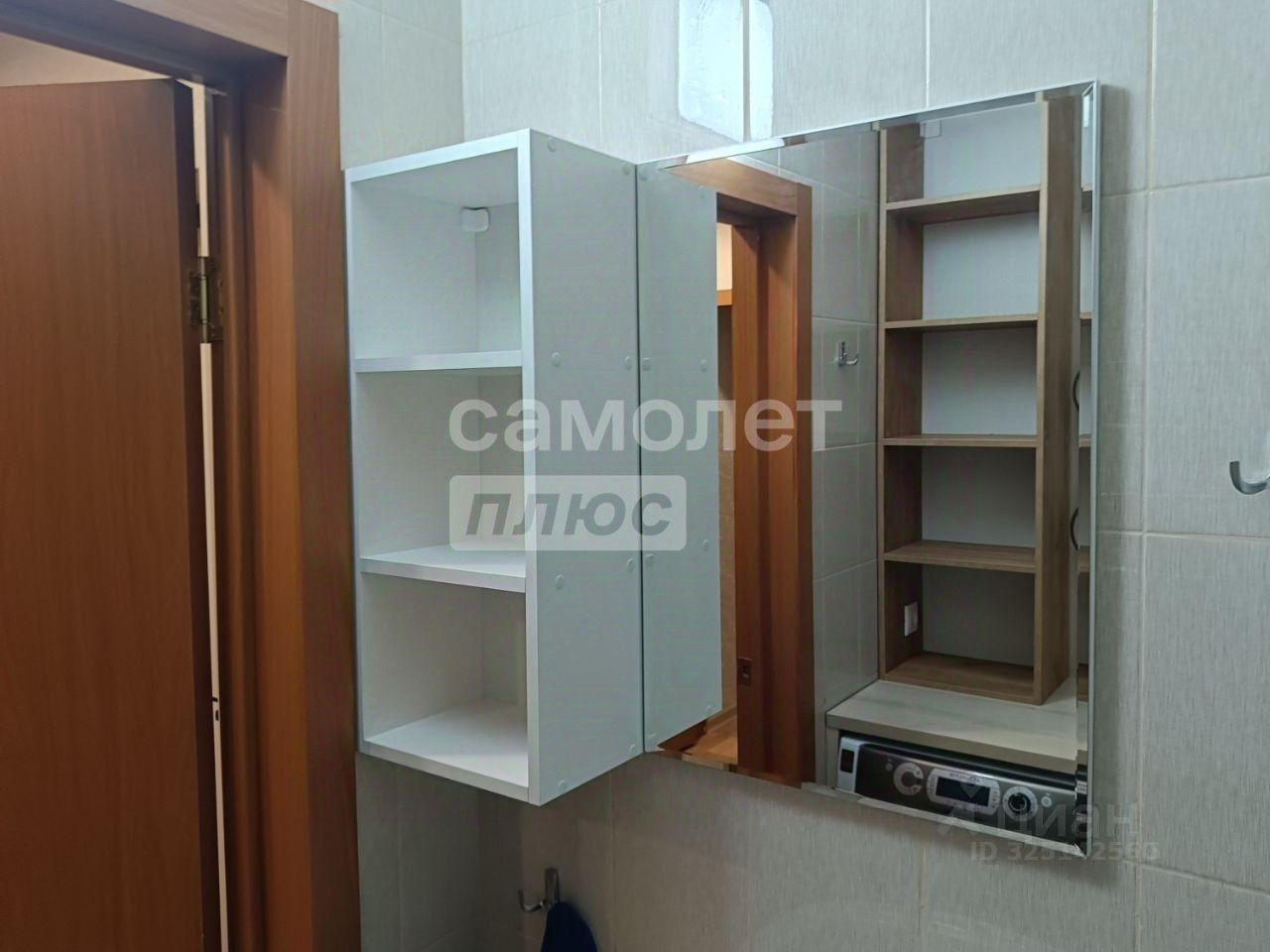 Входная дверь новая, с повышенной звуко- и теплоизоляцией (толщина 110 мм). Ванная комната и туалет раздельные. В ванной установлена тумба под стиральную машину с выкатными ящиками, зеркало, настенные шкафы и раковина. В туалете предусмотрен настенный шкаф.