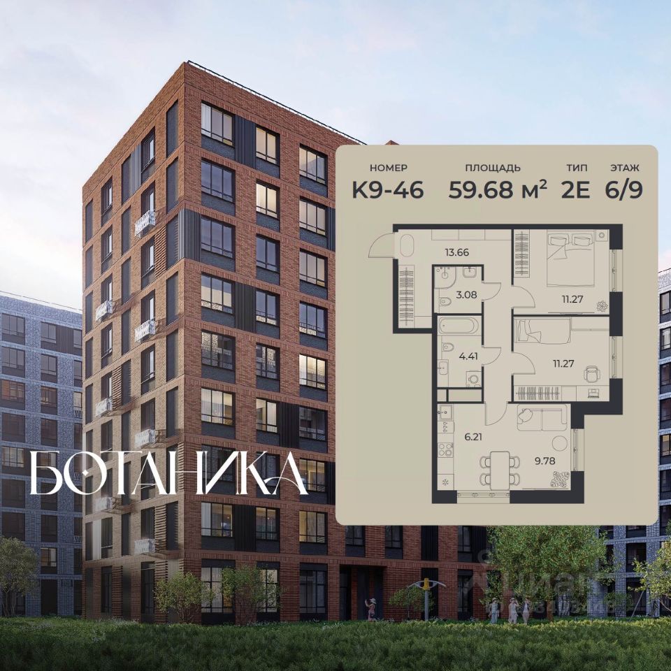 Общая площадь59,68 м2