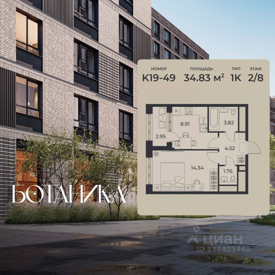 Общая площадь34,83 м2