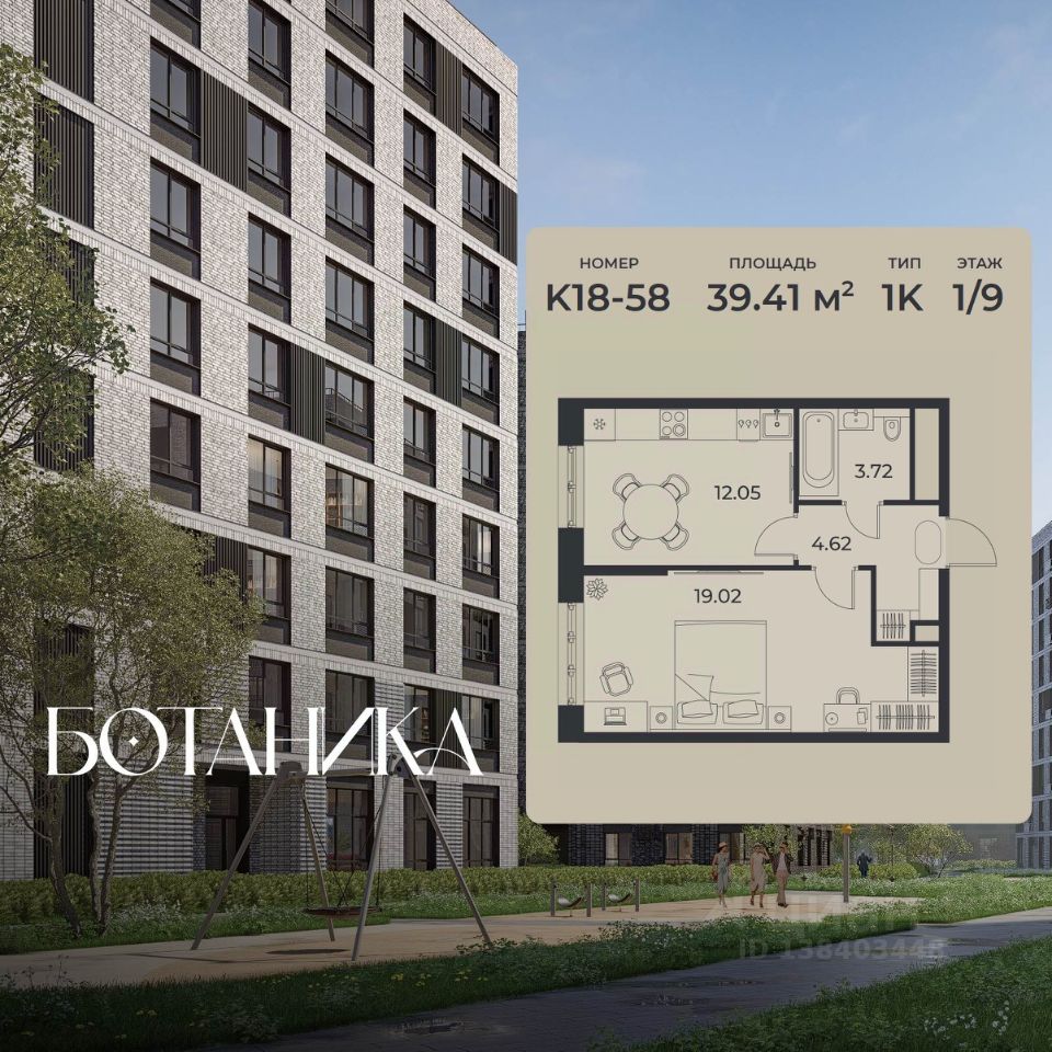 Общая площадь39,41 м2