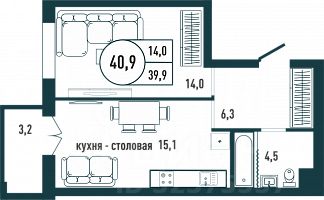 Общая площадь40,9 м2