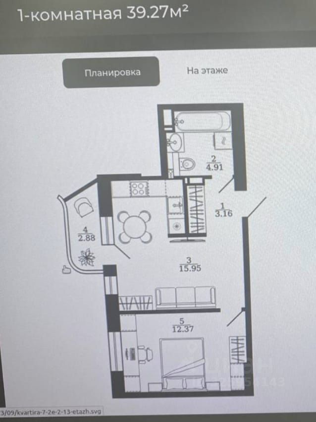 Лоджия станет отличным местом для отдыха на свежем воздухе. Санузел совмещённый, что удобно для экономии пространства.