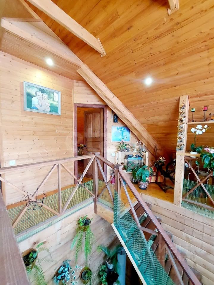 Просторный двухэтажный дом из бруса общей площадью 140 кв.м расположен на обособленном участке в 40 соток, что гарантирует полное уединение и покой. Ключевой особенностью объекта является уникальная планировка со вторым светом, создающая ощущение простора и наполняющая гостиную с камином естественным светом. На первом этаже организовано практичное зонирование: входная группа включает крыльцо и закрытую веранду, отдельную топочную, холл и совмещенный санузел. Центральное место занимает большая кухня-гостиная с выходом на вторую веранду — идеальное пространство для семейного отдыха и приема гостей. Второй этаж представляет собой приватную зону: здесь расположены две изолированные спальни, просторная зона для отдыха и балкон, соединенный спуском с задней верандой.