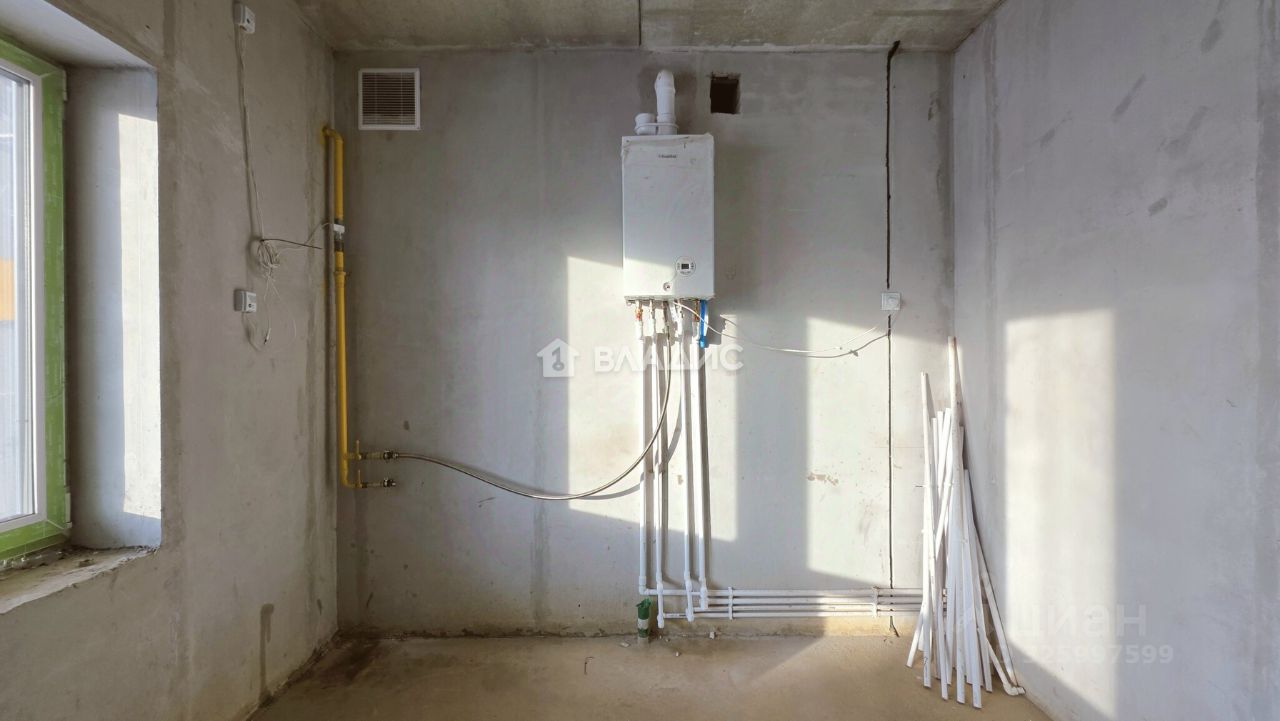 Стены выравнены по маякам гипсовой штукатуркой, на полу полусухая стяжка, установлен двухконтурный газовый котёл. Первый этаж отапливается за счёт тёплых водяных полов и радиаторов, второй за счёт радиаторов и теплого пола в санузле. Толщина внешних стен и перегородок между соседями 400 мм.