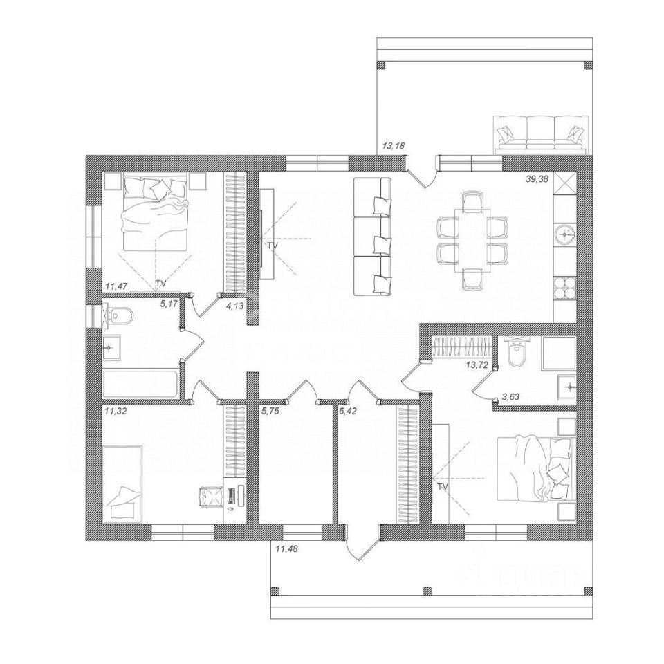 Общая площадь127,2 м2