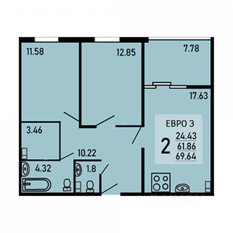 Двухкомнатная квартира 69.64 кв.м. от застройщика Ремстройсервис, расположена по адресу: ул. Студеновская, 23б . На 3 этаже, 25 этажного здания. Просторная кухня 17.63 кв.м..