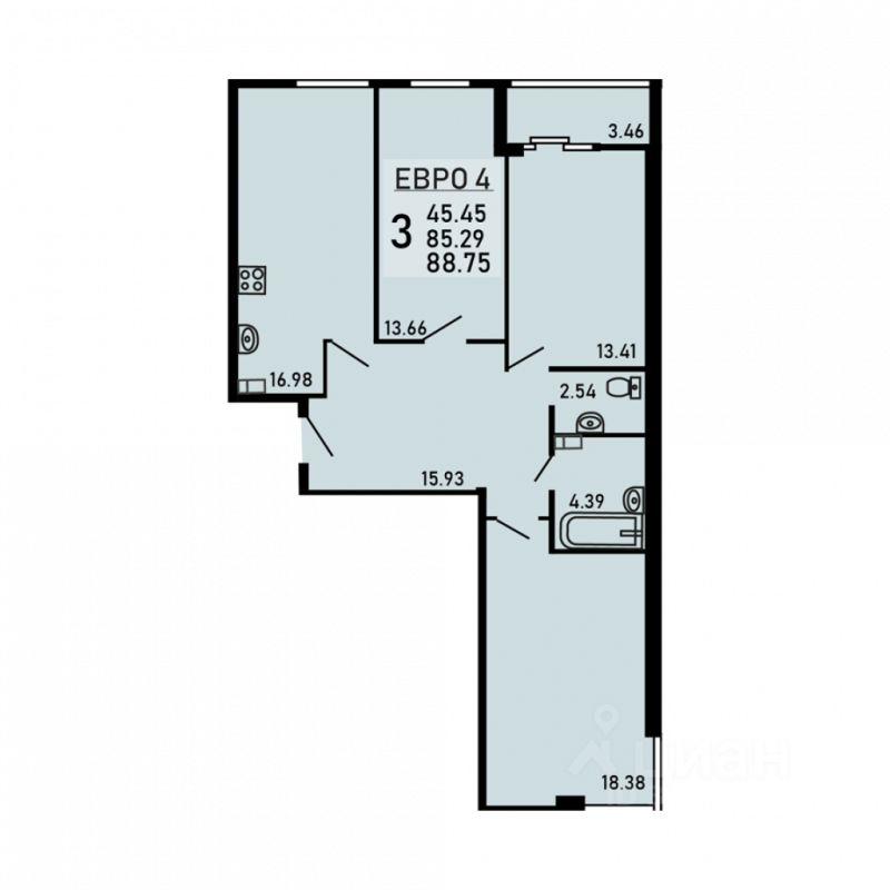 Трехкомнатная квартира 88.75 кв.м. от застройщика Ремстройсервис, расположена по адресу: ул. Студеновская, 23б . На 12 этаже, 25 этажного здания. Просторная кухня 16.98 кв.м..