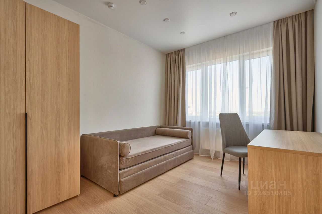 Квартира с современным ремонтом, оборудованная всем необходимым для комфортной жизни. Бытовая техника ведущих брендов (Candy и др.): • духовой шкаф, • посудомоечная и стиральная машины, • электрическая варочная панель на 4 конфорки, • холодильник, • кондиционер, • телевизор с функцией Smart-TV. В квартире размещён полный комплект необходимой мебели: • современный кухонный гарнитур, • обеденный стол со стульями на четыре персоны, • двуспальная кровать в спальне и кровать-кушетка в детской, • три вместительных шкафа, • рабочая зона (стол и стул), • мягкий пуф в прихожей.
