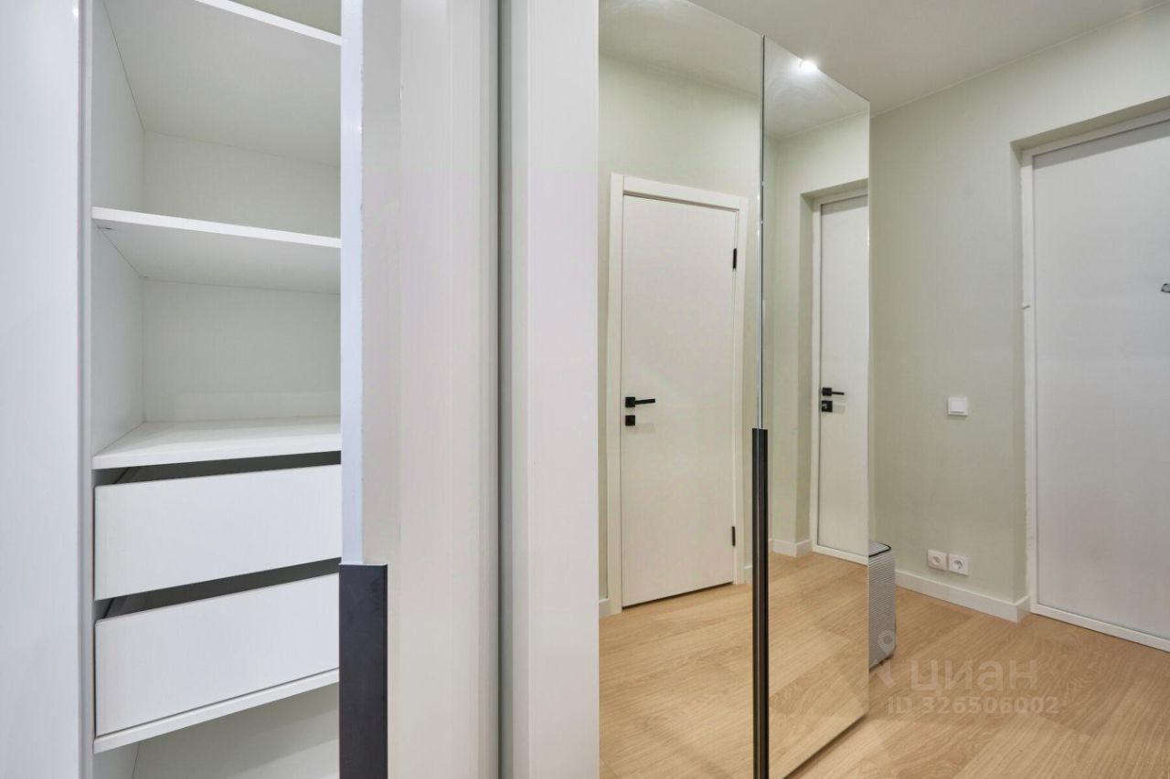 Бытовая техника ведущих брендов (Candy и др.): • посудомоечная и стиральная машины, • электрическая варочная панель на 2 конфорки, • холодильник, • кондиционер, • телевизор с функцией Smart-TV. В квартире размещён полный комплект необходимой мебели: • современный кухонный гарнитур, • уютный обеденный стол со стульями на две персоны, • двуспальный раскладной диван, • два вместительных шкафа, • мягкий пуф в прихожей.