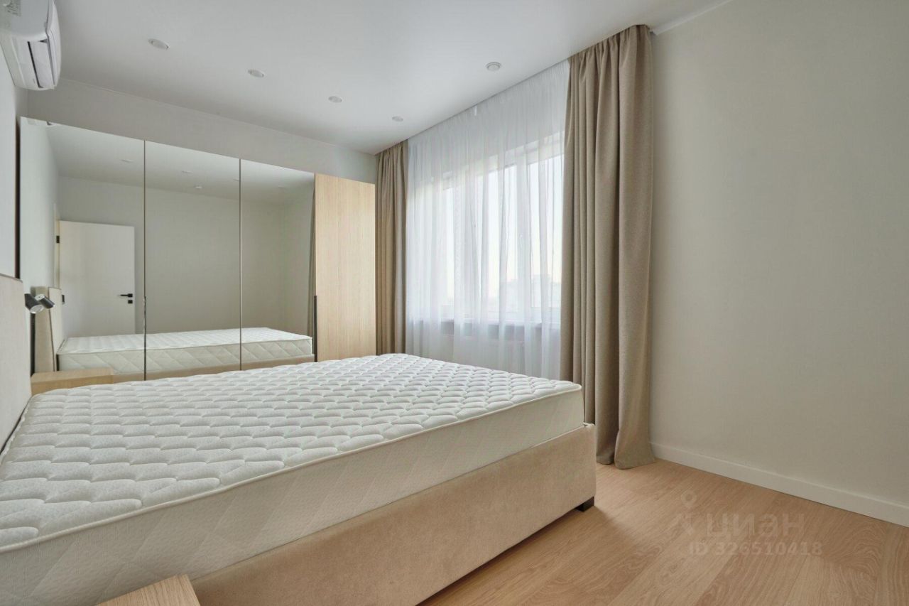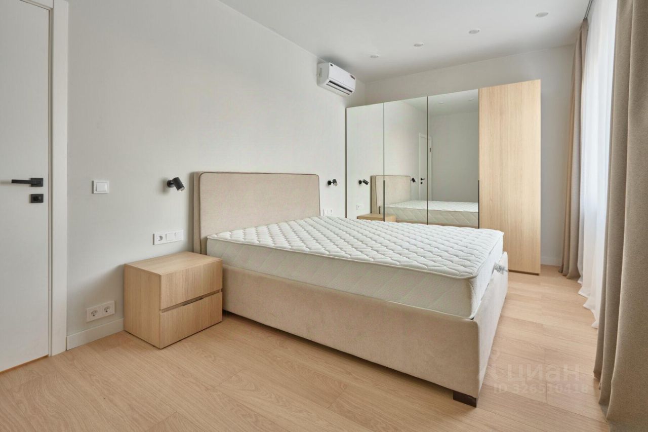 • духовой шкаф, • посудомоечная и стиральная машины, • электрическая варочная панель на 4 конфорки, • холодильник, • кондиционер, • телевизор с функцией Smart-TV. В квартире размещён полный комплект необходимой мебели: • современный кухонный гарнитур, • обеденный стол со стульями на четыре персоны, • двуспальная кровать в спальне, двуспальный раскладной диван в гостиной и кровать-кушетка в детской, • четыре вместительных шкафа, • рабочая зона (стол и стул), • мягкий пуф в прихожей.