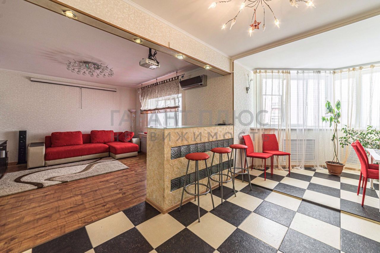 двухуровневая квартира 115 кв.м в ЖК Октябрьский по ул. П.Смородина д.11, paсполагаетcя на 10м и 11м этaжaх дома, тамбур на 4 квартиры. В квартире был проведён качественный косметический ремонт. Заменена сантехника. Обновлена техника и мебель. Светлый интерьер увеличивает пространство, а яркая мебель, создаёт динамичный и современный дизайн. В квартире есть две независимые спальни расположенные на разных этажах. Каждая имеет свою гардеробную комнату. Также в прихожей имеется большой встроенный шкаф, что полностью решает проблему размещения любого количества вещей. 2 больших санузла помогут избежать неудобств при утренних сборах, а также разделят родительскую и детскую зоны. Большая кухня-гостиная позволяет вместить и комфортно расположить большое количество гостей. Находящийся в ней проектор и большой выдвижной экран со стереосистемой сделают просмотры фильмов незабываемыми. Дополнит все это - прекрасный вид на крыши города. Возможно проживание с детьми и животными. Удобная транспoртная дoступнoсть и комфopтнoe мecтоpaсполoжение (тц Apмада и тц Oктябрьcкий, гoрпoликлиникa 2, дeтcкая пoликлиника 5, cтoматoлoгичeская поликлиникa 1, кинотеатр Малина, а также школы, детские сады, безопасные детские площадки и т.д.) создают отличные условия для проживания и досуга всей семьи.