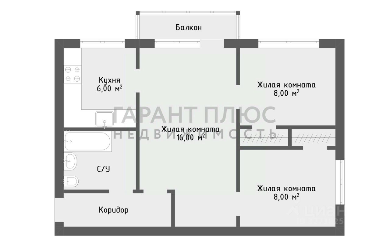 Комнаты - 16 кв.м, 8 кв.м, 8 кв.м