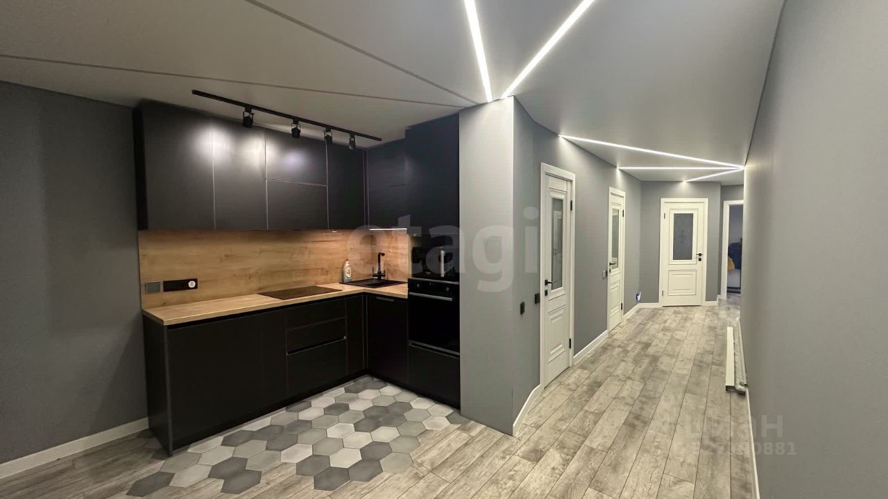 Много осветительных приборов. Теплый пол электрический на кухне, в коридоре, в сан.узле (включали только в межсезонье, тк квартира ОЧЕНЬ теплая). В квартире остаётся встроенная кухня со встроенной техникой (индукционная панель, духовой шкаф, посудомойка, вытяжка). Кухня-гостинная увеличена за счет лоджии. Окно выходит во двор. Из комнат открывается прекрасный вид на школу, детский сад.