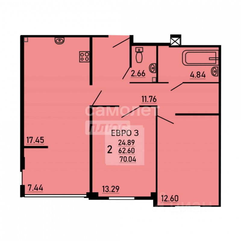 Продам новую уютную 2-комнатную квартиру формата Евро-3 общей площадью (с лоджией) 70 м² в ЖК ''Парус''. Дом комфорт-класса